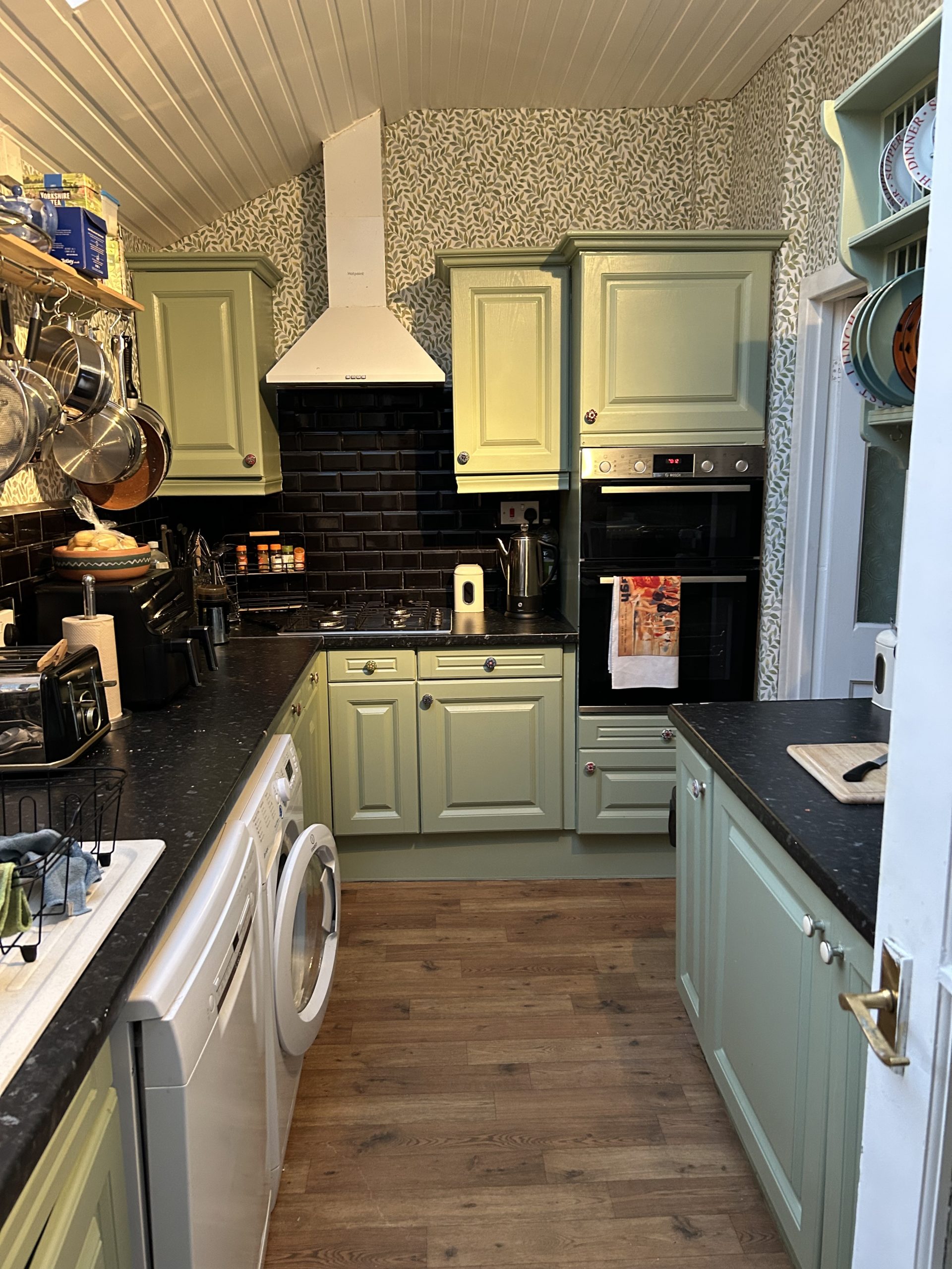 Kitchen – the small compact kitchen has everything you need for a short stay, including a washing machine, microwave, oven and air fryer. You can cater at home or bring in food from many of the local restaurants nearby. An iron and board are available to use.